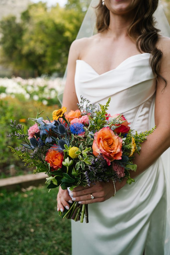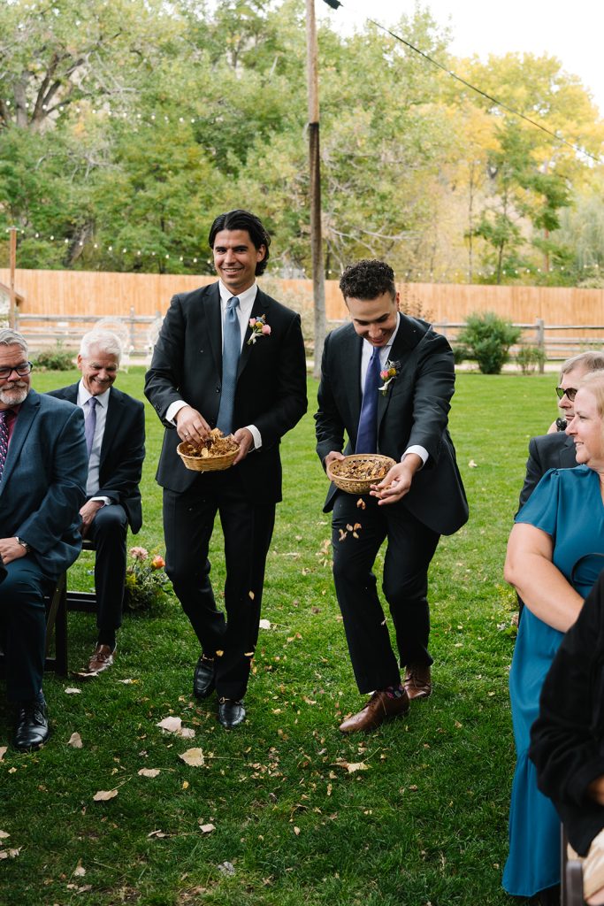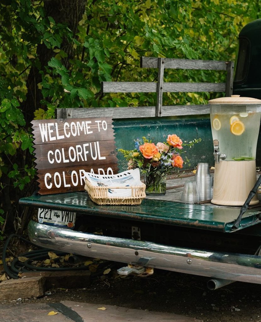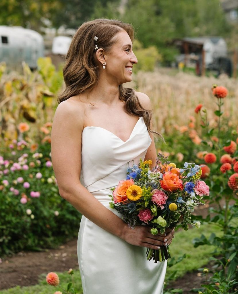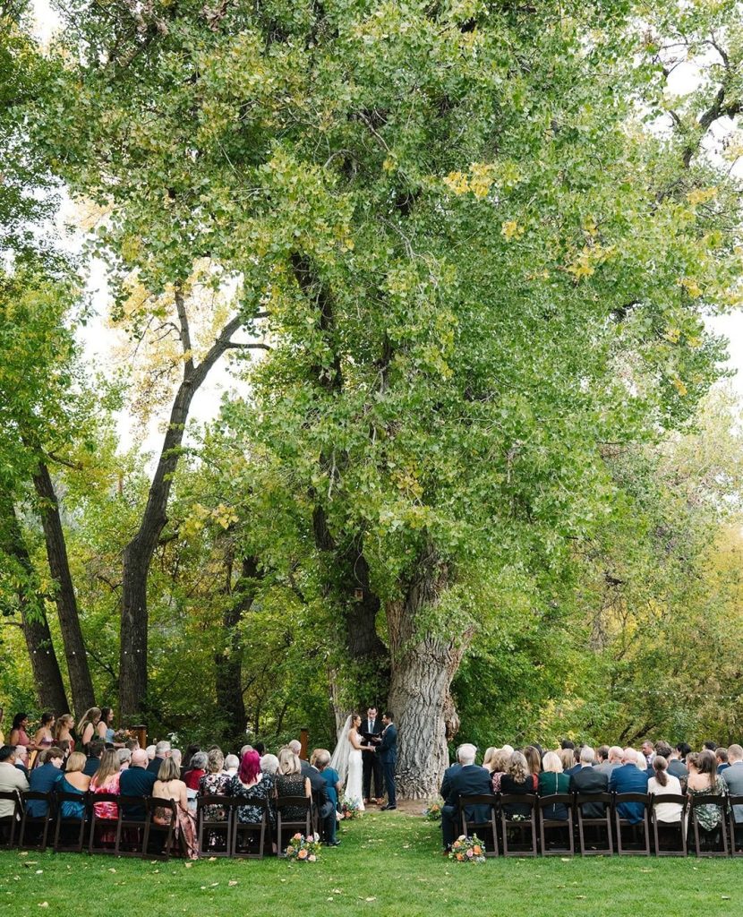 Kaylee and Adam had an October wedding at the charming Lyons Farmette where they enjoyed the abundant natural beauty of Lyons with the intimate seclusion of their venue. The couple’s ceremony was held under the large ceremony tree. In lieu of a flower girl, they opted to have two of their close friends be their flower men while live music played. During their cocktail hour, adorable alpacas from Sunrise Silhouettes delighted their guests and even posed with Kaylee and Adam in the flower field.