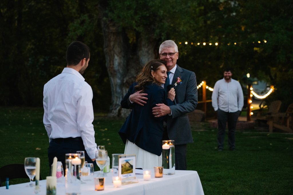 As the sun went down, dinner was held outside on large farm tables and Kaylee and Adam had their first dance by the river. The remainder of the celebration transitioned into the indoor reception hall for open dancing and delicious late night snacks from Little Man Ice Cream!