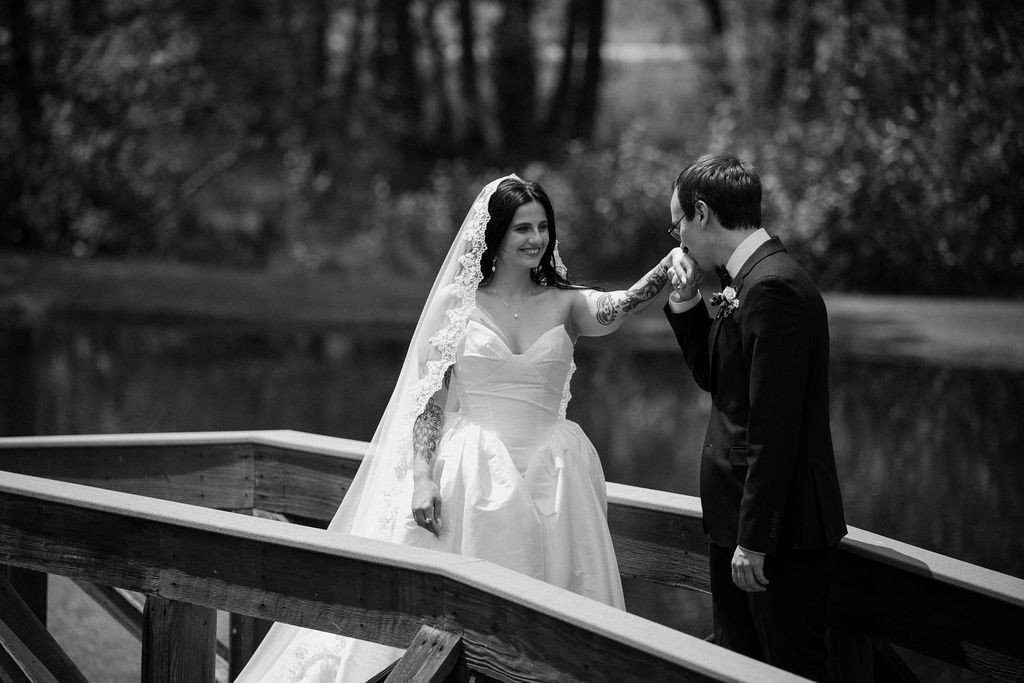 Their first look was at the iconic pond on the venue’s property, where Brittany crossed the wooden bridge for an intimate moment with Dalton prior to their ceremony. Nature was working hand in hand with the couple, bringing in rainstorms during their ceremony, reflecting a moody atmosphere and Brittany reflects that this was her favorite moment of their wedding day.