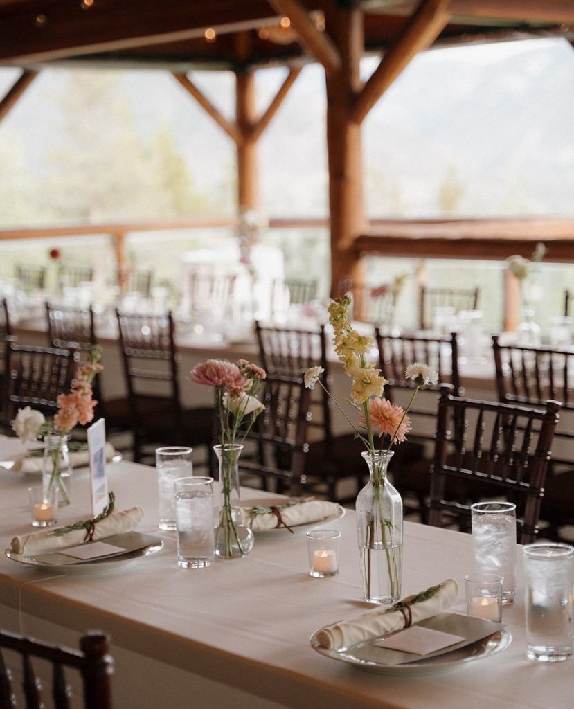 Romance meets mountain charm in Ginny and Conor’s whimsical wedding in Grand Lake with planning by the ever talented Mountain Magnolia Weddings & Events. With stunning views all around, the couple opted for minimalist, whimsical decor by Colorado Party Rentals with bursts of florals that complimented the natural beauty of their venue’s location.