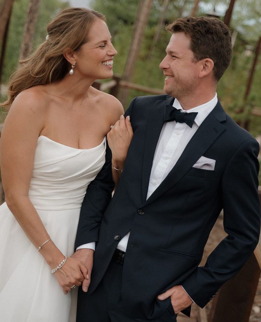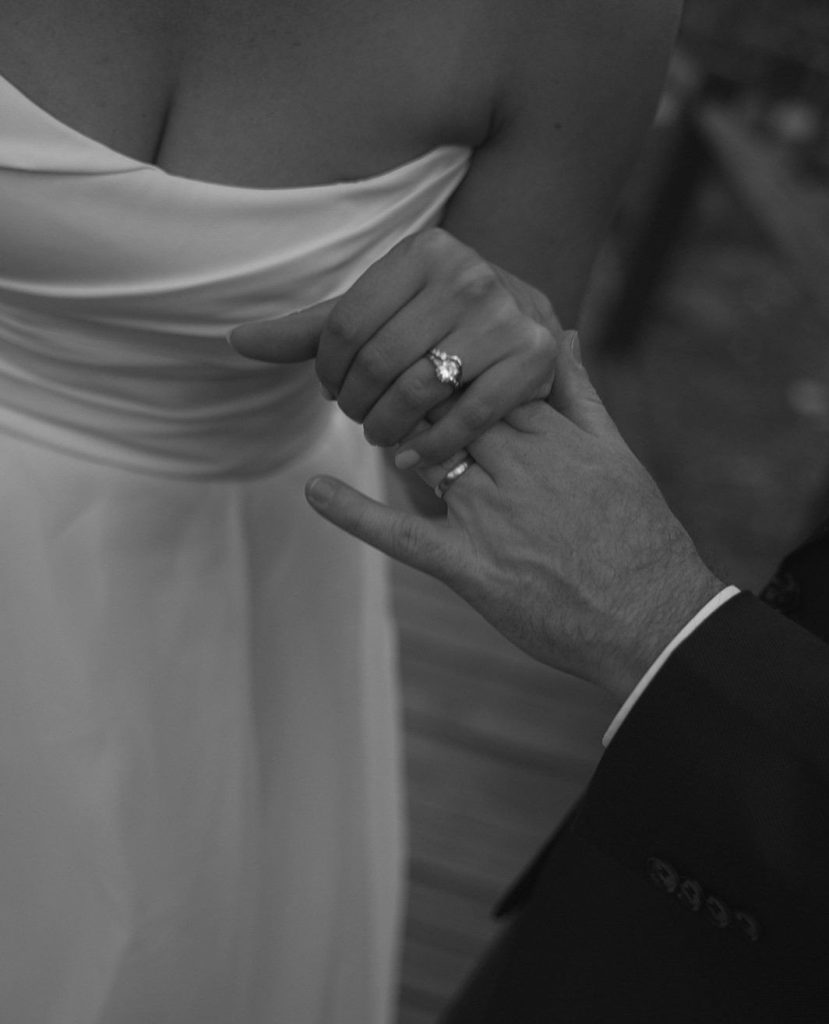 Ginny reminisces on her favorite wedding memory, saying, “the morning of our wedding was perfect in so many ways. We woke up together, made coffee, and took the boat out—just the two of us. The sun was rising, the lake was completely still, and we were the only ones out there. That’s when we read our vows to each other, and it was such a special, peaceful moment. Afterward, Conor picked up his friends to spend some time on the water, and I went back to the house to relax with my girlfriends on the dock. We were able to carve out meaningful time with each other and our closest friends, which was really important to us.” Conor goes on to tell us, “our first look was a special and exciting moment – to me, it felt like this was when our wedding truly began. After spending the morning outside with friends, the anticipation of the day steadily building, getting the cue to take my walk down the dock to await Ginny’s arrival was an unforgettable moment. Standing by the water while Ginny walked toward me felt perfectly ‘us’ , exactly as it should be.”