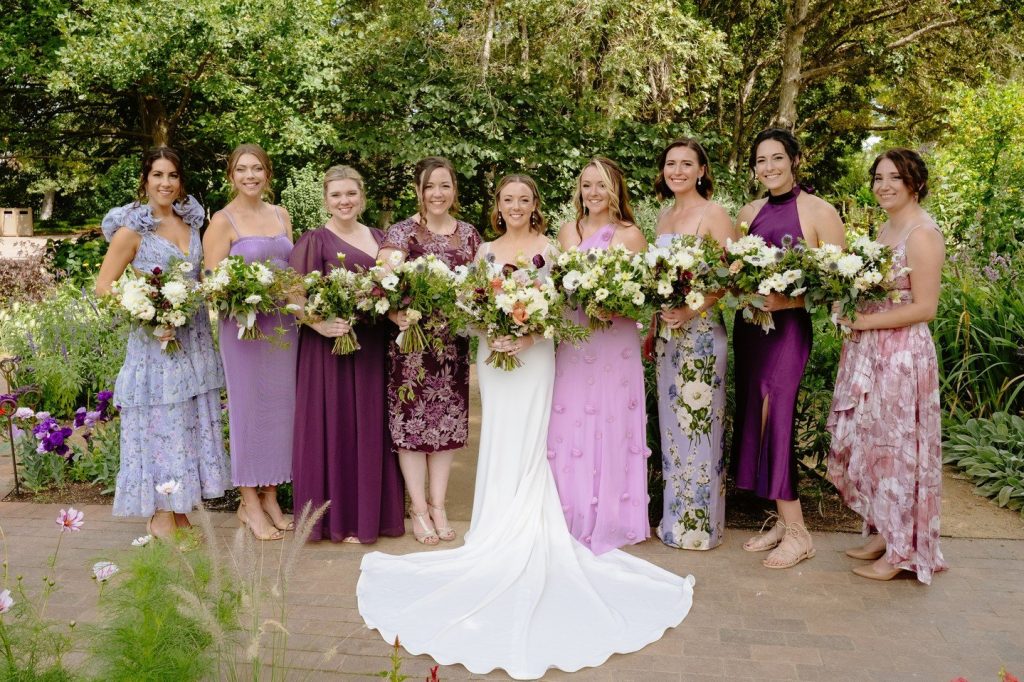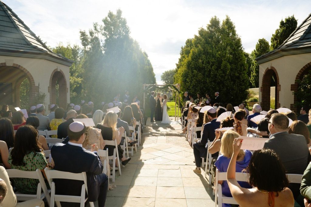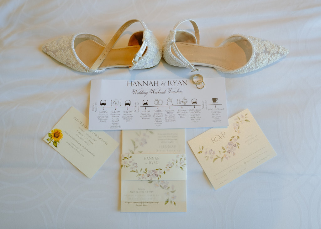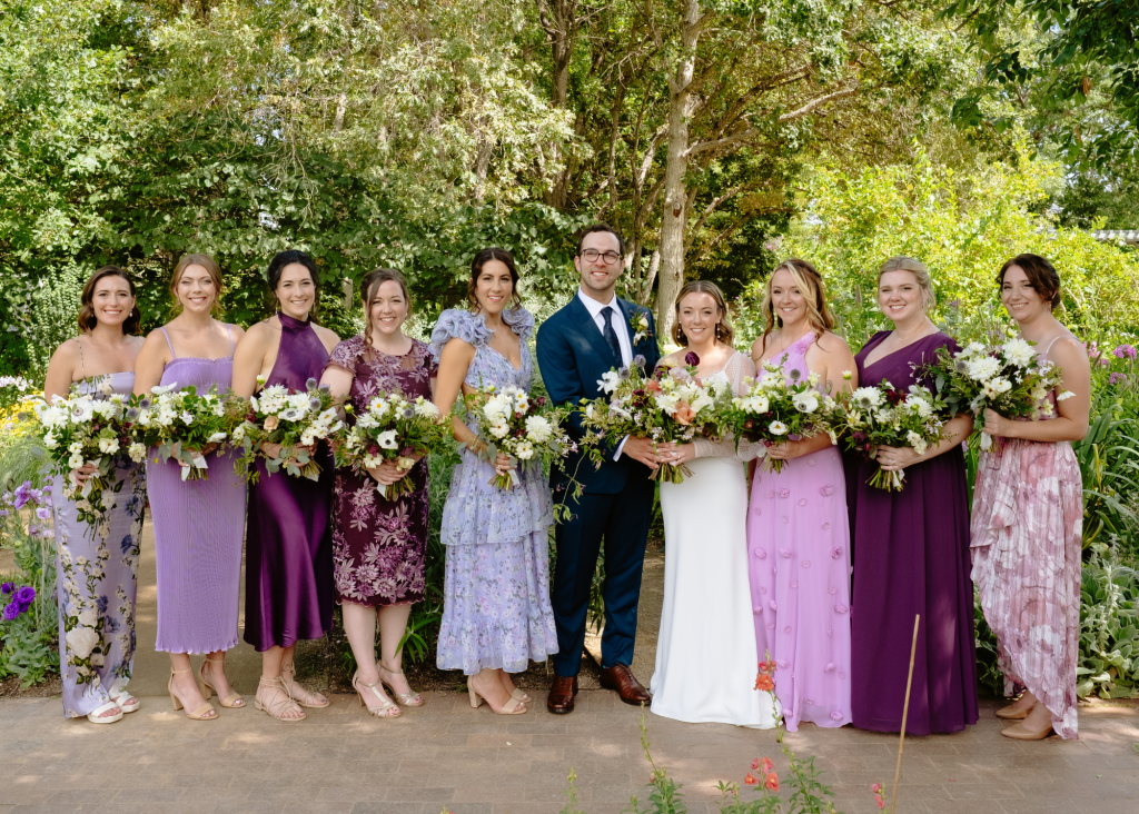 Hannah and Ryan’s wedding at the Denver Botanic Gardens is perfectly picturesque! They got married under a chuppah and celebrated with all of their friends and family after Ryan broke the glass. Their wedding style was light and airy with shades of purple and blue mixed with accents of pink and light green, creating a whimsical and bright celebration. ⁠