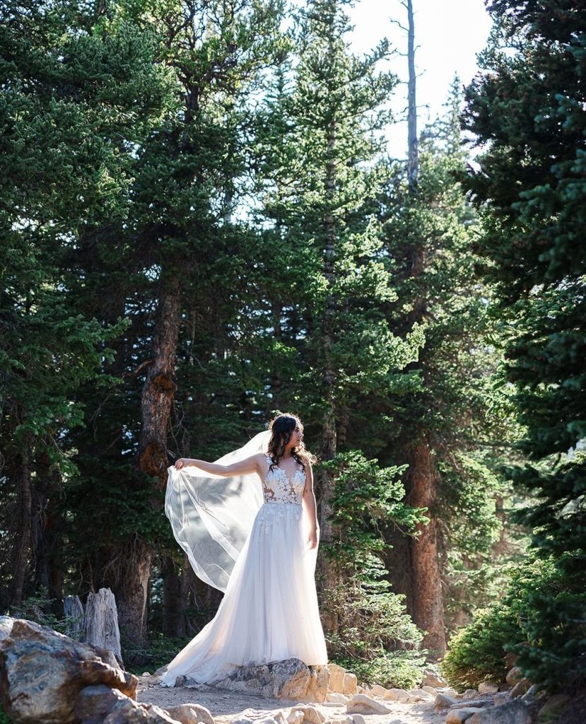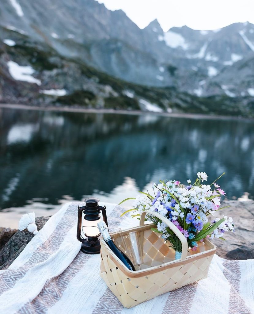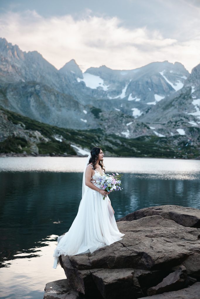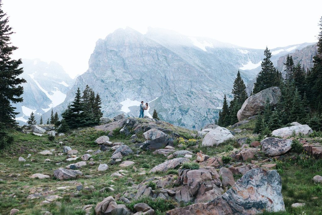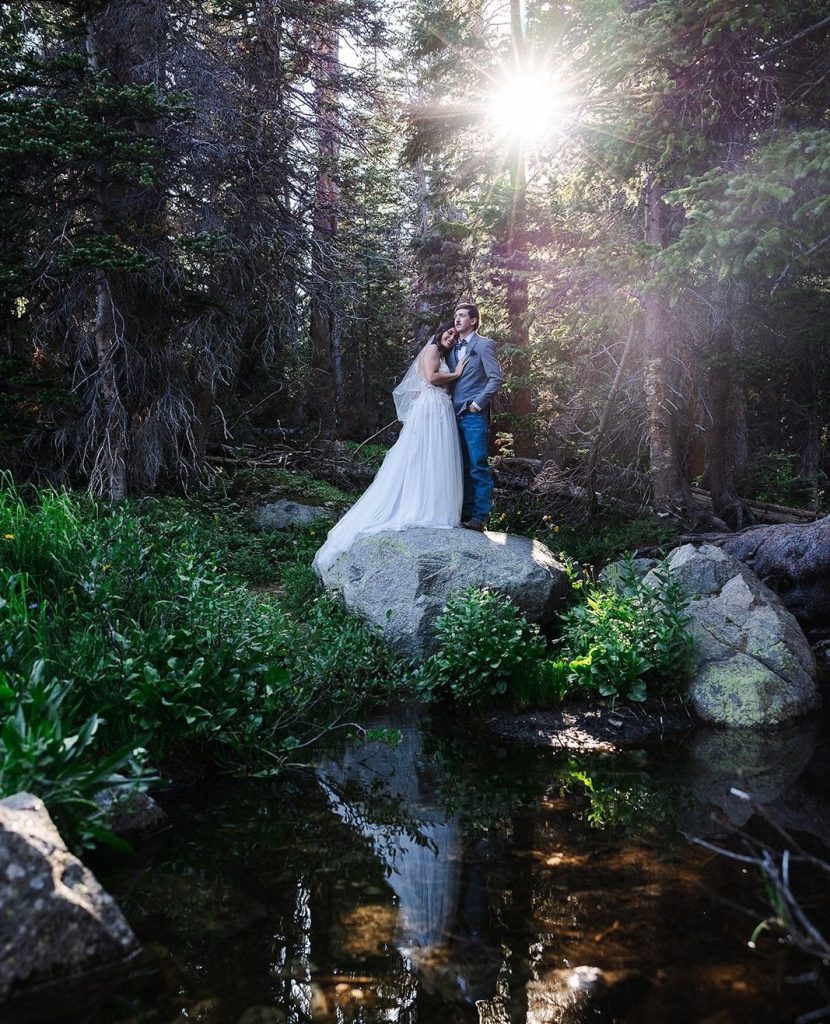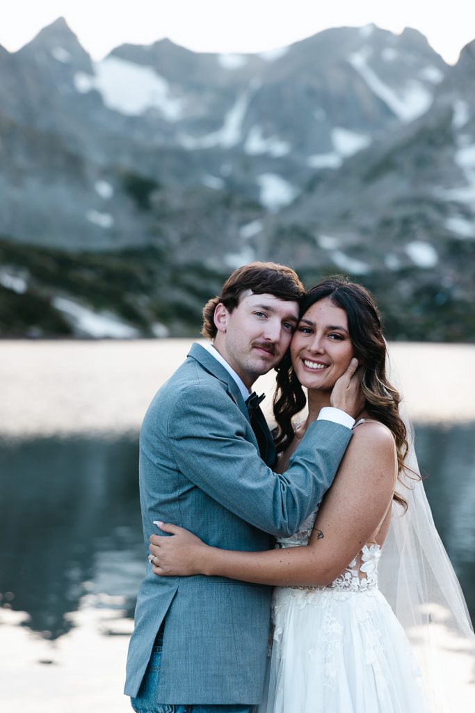 Keely and Bryce had an intimate ceremony with close family and friends at Brainard Lake before hiking to Lake Isabelle with just their adventurous photographer, NASFocus, along with them for beautiful sunset photos and a sweet picnic as newlyweds.⁠ As the sun dipped below the horizon, the two popped a bottle of champagne to toast their happily ever after before making the hike back down amongst the wildflowers.