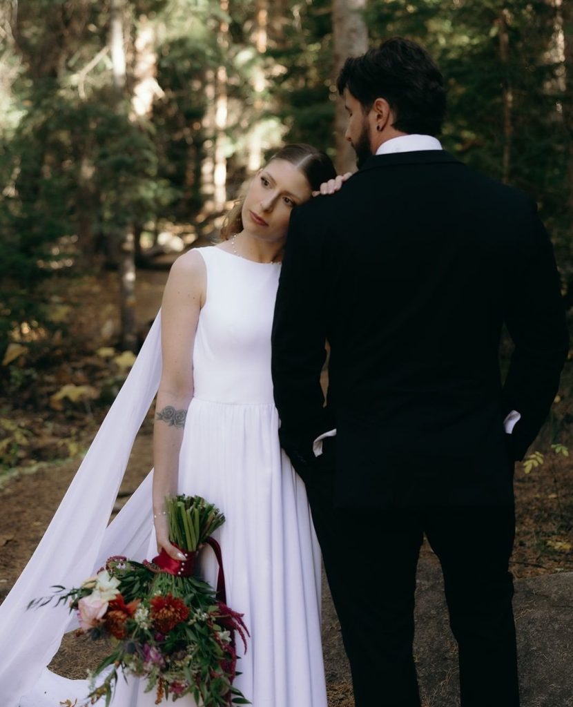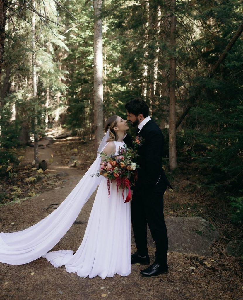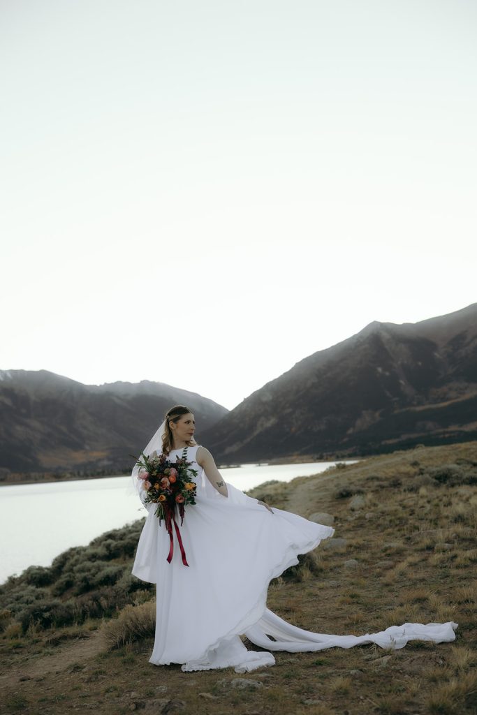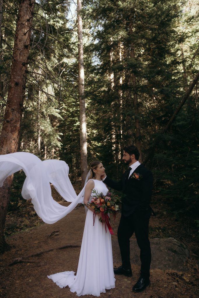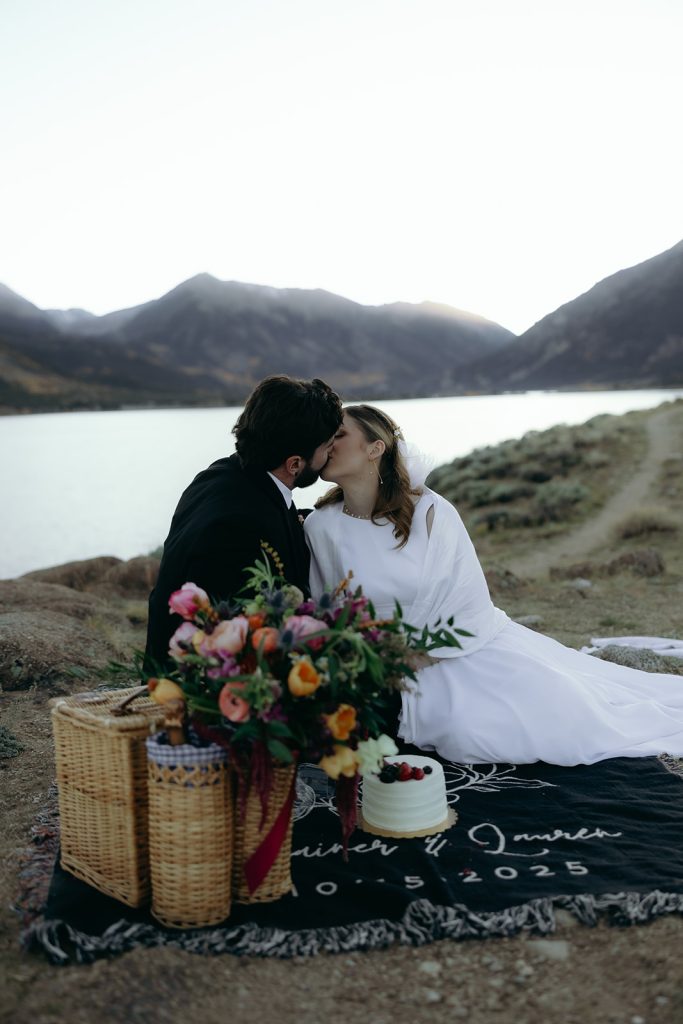 Lauren and Rainer eloped in Independence Pass near Aspen, Colorado, with only their photographer, Destiny Faith Photography, as witness. They started the day with sunny photos wandering the wooden bridges and trails throughs the high mountain forests, including a stop for portraits by the river. Their vows were exchanged in perfect serenity with the sun on the crest of the mountains, creating a hazy golden light as they exchanged rings and literally tied the knot! They rounded out their elopement day with a cake and champagne by the lake followed by lantern portraits as the last of the day’s light faded into night.