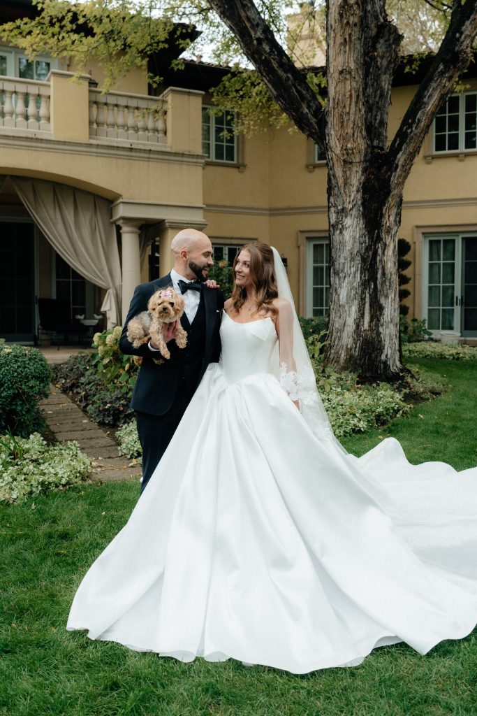 Talk about dreamy! Our styled shoot at Oceana’s Gardens in beautiful Boulder was one for the books. With planning and design curated by Enjoué Studio Events, this gorgeous shoot came together perfectly. Colorado Party Rentals provided stunning decor accentuated by thoughtful floral arrangements by Jackrabbit Floral & Design, as well as the picture perfect cake by Petite Petal Cakes. Elevated Spirits Colorado provided exceptional bartending while crafting amazing cocktails. Beautiful styling was provided by Denver Wedding Dresser, expertly styling bridal gown by Guillermo Pharis, veil by Veil Trends Couture, and jewelry from John Atencio. Brite Beauty did our bride’s hair and makeup perfectly. Our talented wedding pet attendant, The Pawfect Plus One, was there to keep our adorable dog models comfortable and happy throughout the shoot. Last, but certainly not least, the beautiful stationary was created by Alexis Jones Designs.