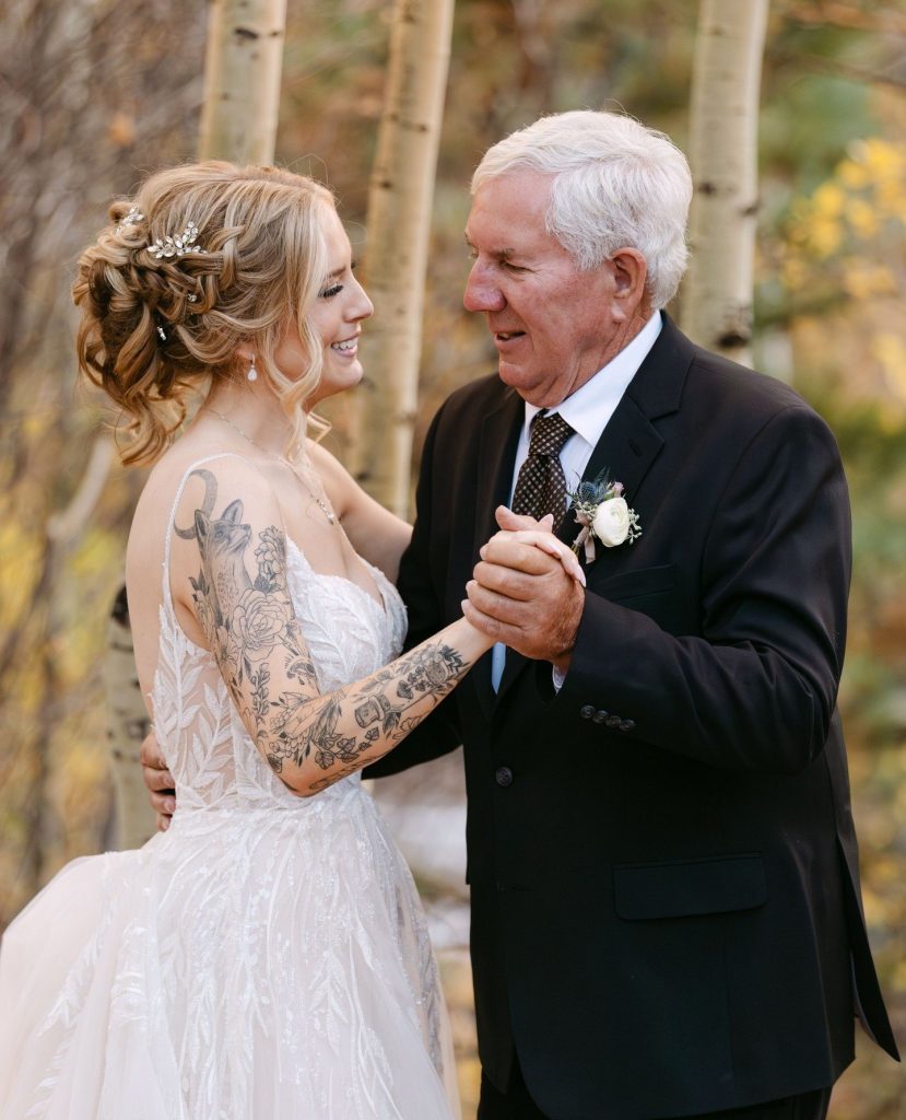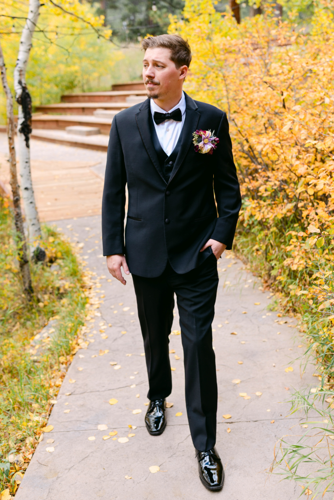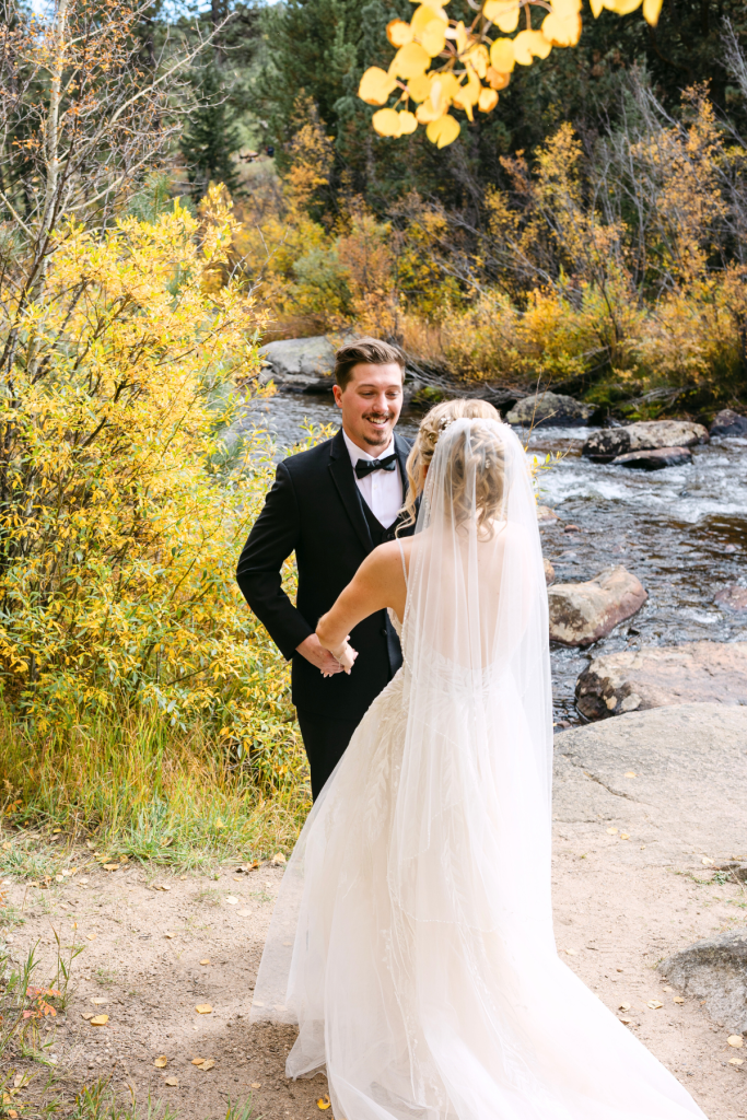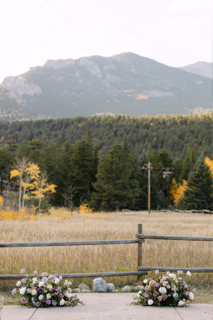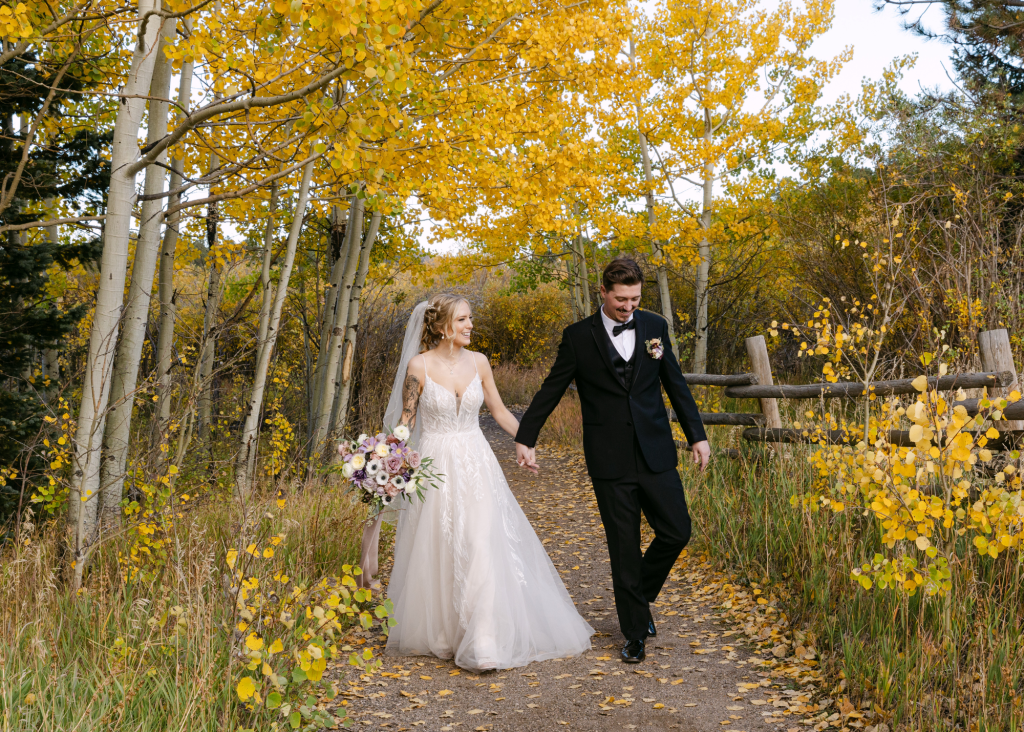Paige and Austin had the most beautiful, fall wedding at Wild Basin Lodge in Allenspark, Colorado. Just on the edge of Rocky Mountain National Park, they began their forever surrounded by their loved ones and the glowing aspens. Their ceremony took place in the venue’s meadow with grand views of the Rocky Mountains right at golden hour. One of the most special parts of the ceremony was that the groom’s Grandpa Jerry was the officiant!