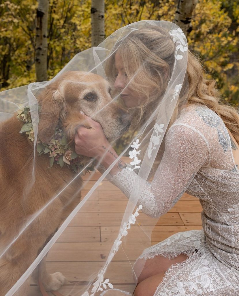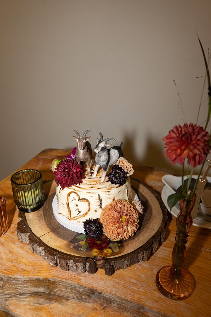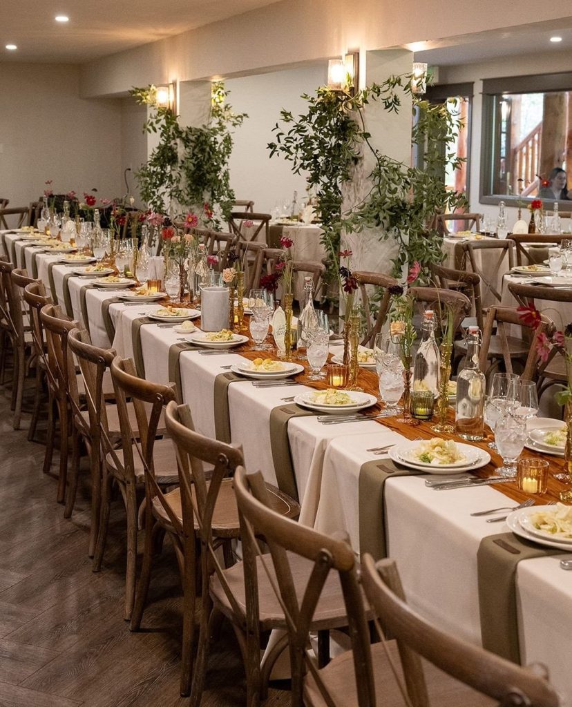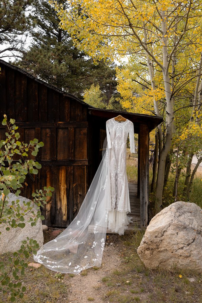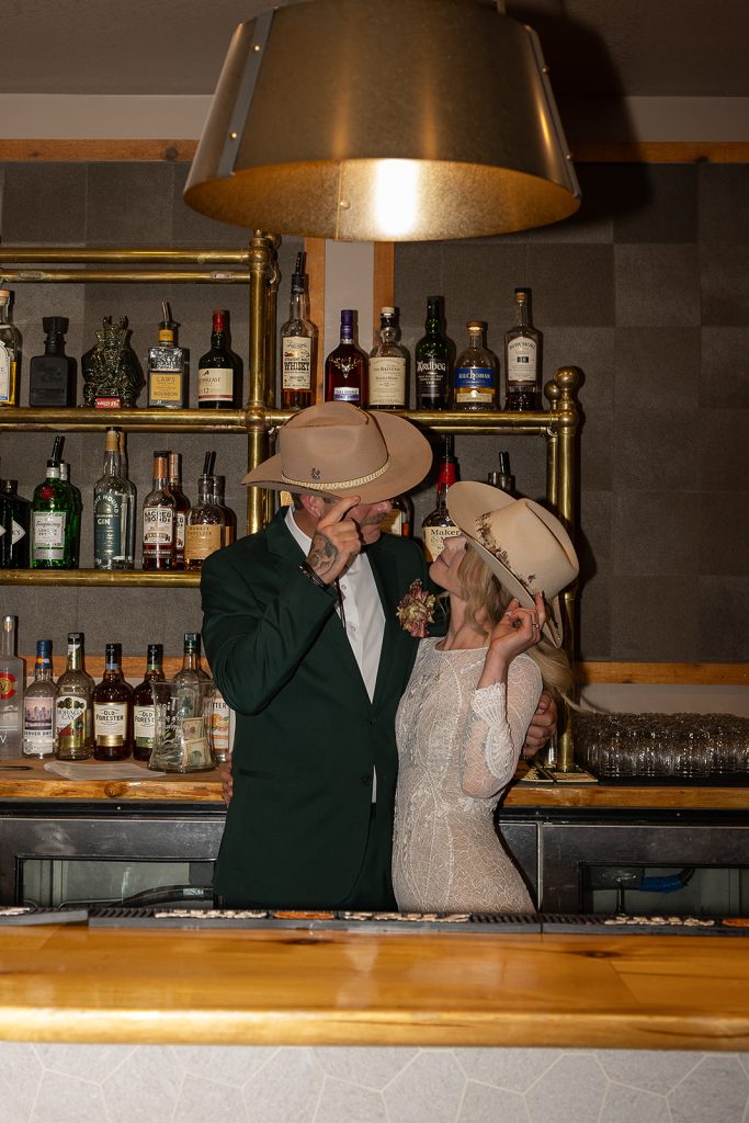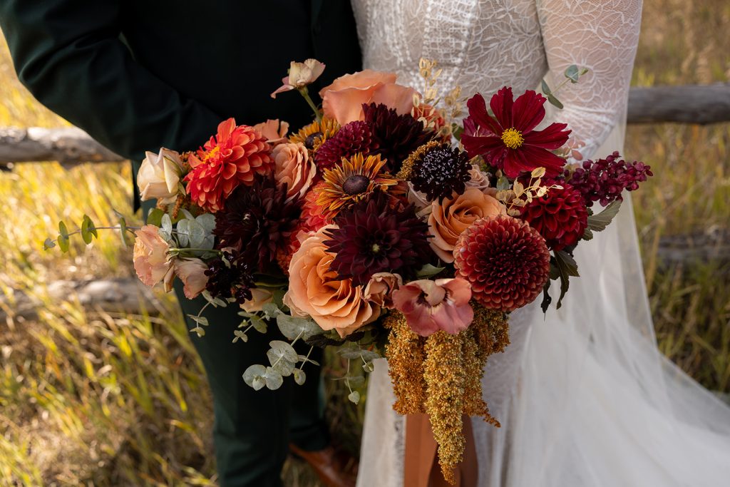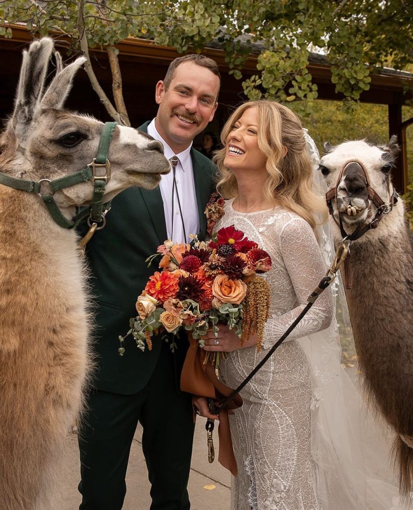 Exlpore Tess & Mike’s gorgeous wedding day in Allenspark, Colorado. Wild Blossoms Studio created the most stunning floral installations for their ceremony and reception, not to mention Tess’s beautiful bouquet and Mike’s incredible boutonnière. Their wedding day wouldn’t be complete without their lovable pup, who wore a flower collar and even walked Tess down the aisle at their outdoor ceremony. After their ceremony, the celebration flowed indoors for a fun cocktail hour with light rain showers outside. Fortunately, the rain didn’t last long and Tess and Mike were able to have their first dance back outdoors. The remainder of the reception was spent dancing the night away, visiting the custom hat bar, and having their grand exit to LED streamers.
