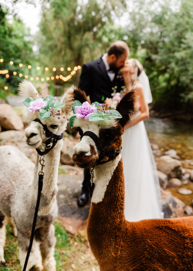 Sunrise Silhouettes offers unique animal encounters with their adorable alpacas creating unforgettable wedding day memories. Lovingly raised and trained, these alpacas are perfect companions for your ceremony or reception for you and your guests to enjoy their sweet presence. Not only will you and your guests love the unique experience they add to your wedding day itself, they also add a special touch to your wedding photos featuring these special animals.